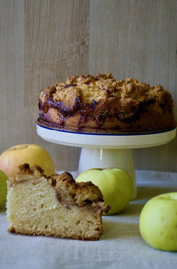 Цього разу ми приготуємо насичений масляний пиріг, зверху викладемо яблука з корицею та посиплемо мигдальним штрейзелем.