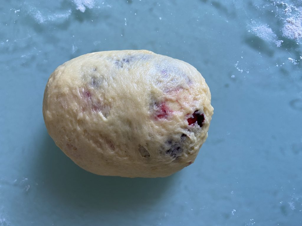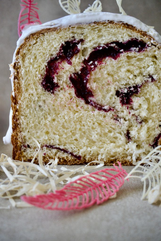 Щоб урізноманітнити смаки, ця паска буде із ожиною. Гляньте, як гарно виглядає вона у розрізі.