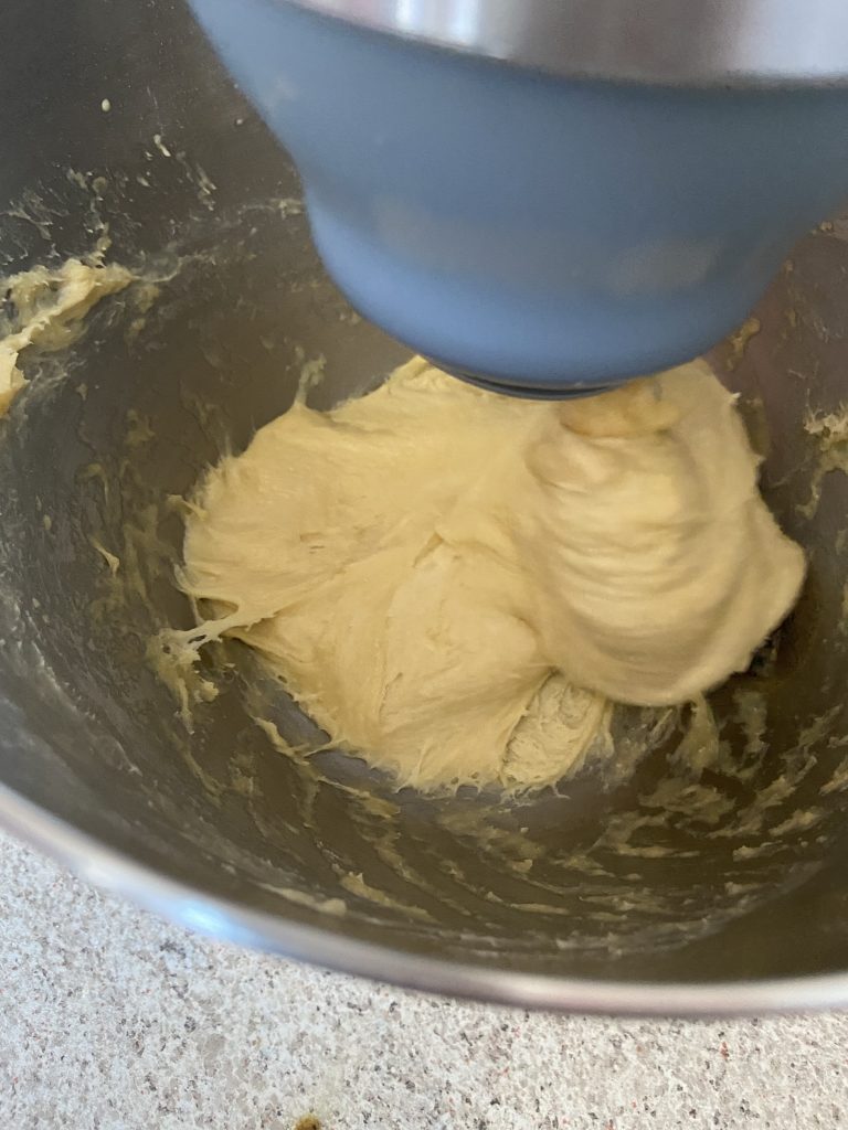 Вимішуємо 10-15 хв. Тісто має накручуватися на крюк та відставати від стінок.